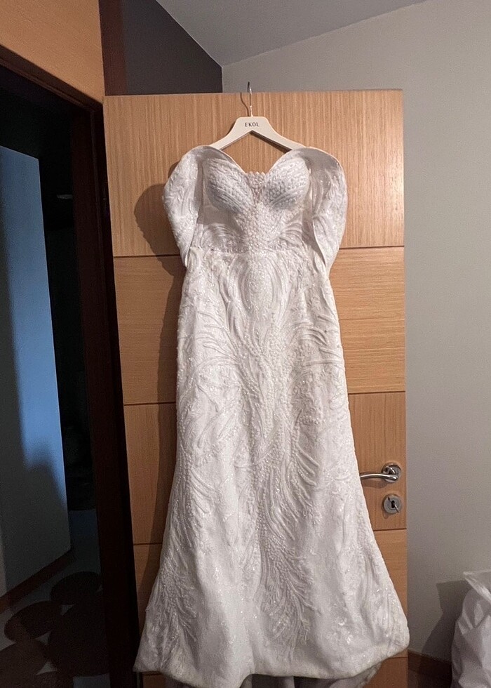 Gelinliğim özel tasarımdır birkaç gelinliğin birleşiminden oluşturulmuş balık kolları Madonna kol çıtçıtlı istenilirse çıkarılabilir straplez hale gelebilir. Kuyruk takılıp çıkarılabilir. Duvağı uzundur. İki farklı duvak vardır biri rahibe duvak full işlemeli diğeri düz simli uzun duvak benim iki düğünüm vardı iki şekilde de kullandım. 38-40-42 bedene uygun ayarlanabilir. Benim boyum 170cm kilom 72.