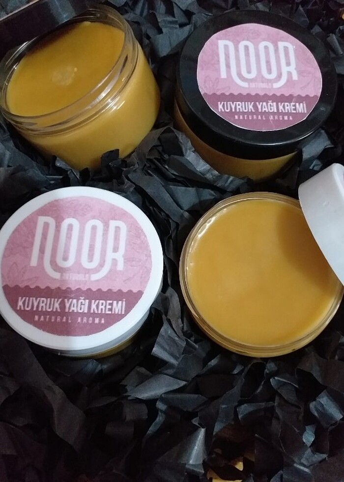 20 çeşit doğal yağ karışımı ile hazırlanan kuyruk yağı kremi yeni kutusu ile satışta. Biraz araştırıp okuyan herkes kuyruk yağı kreminin faydalarını bilse de birazcık yazalım tazeleyelim. Ezilme, burkulma, menisküs yırtığı, ağrı ve sızılarda, morarmalarda, kas sıkışması ve yırtılması, bağ lezyonları, bağ yaralanmaları, şiş ve ödemlerde, eklem sancılarında,kıkırdak rahatsızlıklarında, eklem sıvılarının azalmasında ve daha bir çok ağrıda denenmiş ve etkisi görülmüştür. Sürekli kullanımda gözle görülür etkisi kanıtlanmıştır. Ağır kokusu yoktur. Kuyruk yağlı krem değil kuyruk yağı kremidir. Kuyruk yağı oranı daha fazladır. Şifaya vesile olsun