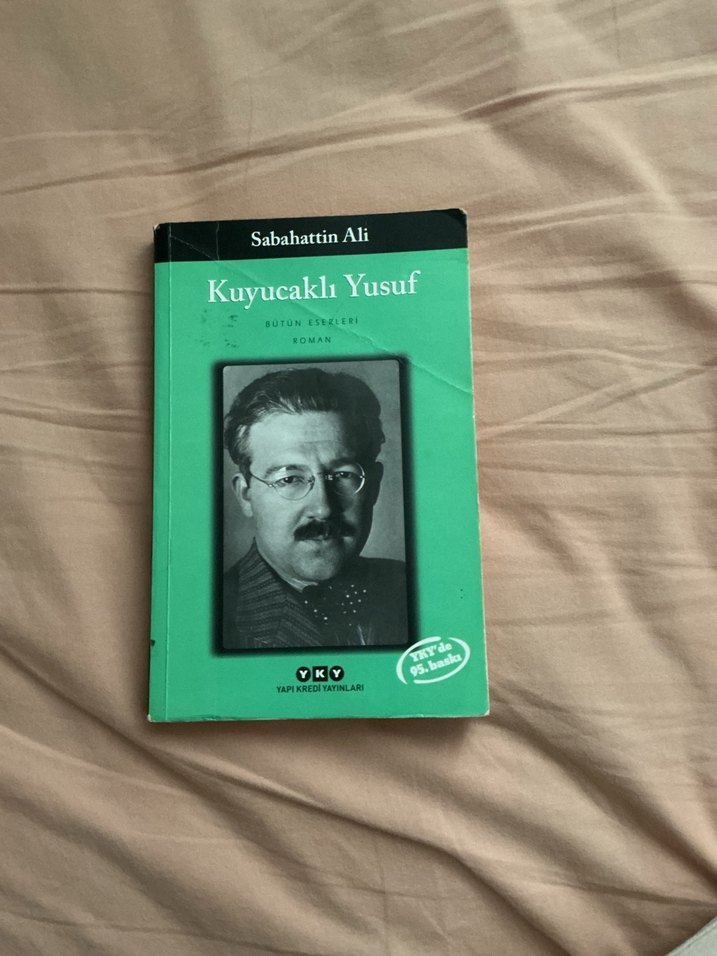 Sabahattin Ali'nin Kuyucaklı Yusuf adlı romanı, yeşil kapaklı ve yazarın siyah-beyaz portresini içeren klasik bir Türk edebiyatı eseridir.