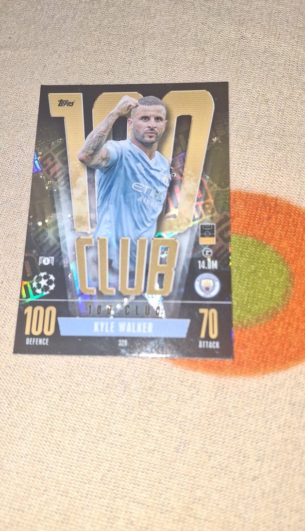 Futbolcu Kyle Walker'ın istatistikleri ve kulüp detaylarıyla altın renkli, canlı pop kültür tarzında rozet. ⚽