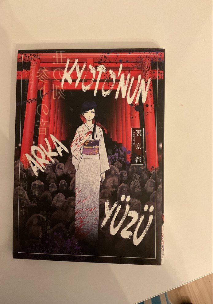 "Kyoto'nun Yüzü" adlı çizgi roman, kırmızı torii kapıları altında taş heykeller arasında geleneksel kıyafetli bir kadın figürü içeriyor. Kapak, Japon kültürünü karanlık ve gizemli bir atmosferle yansıtıyor. Kitapta yırtık veya çizik yoktur