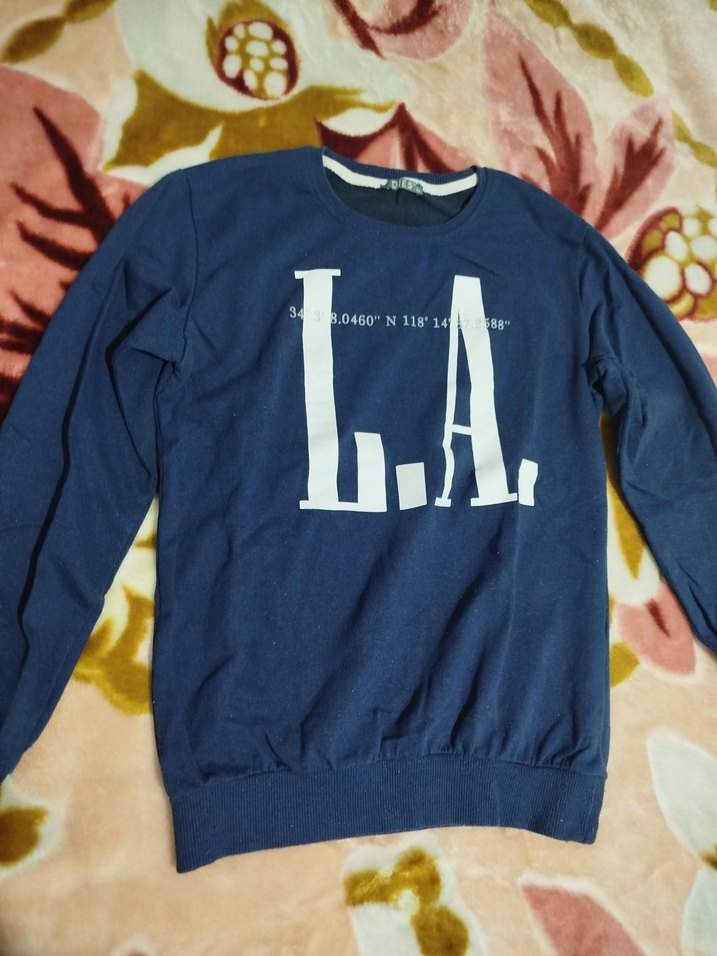 L.A. Baskılı Mavi Denim Sweatshirt m beden sifir