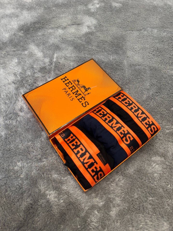 3lü Koyu turuncu renkte, baskılı Hermes desenli, kısa ve vücuda oturan erkek boxer. Markalı kutusunda teslim edilir.