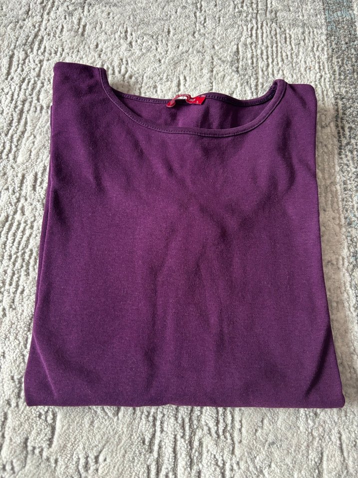 Mor renkli hamile tişörtü, yuvarlak yaka ve uzun kollu olarak keten dokusuyla rahat bir kullanım sunar. Salaş kesimi ve desensiz sade tasarımıyla günlük kullanıma uygundur.