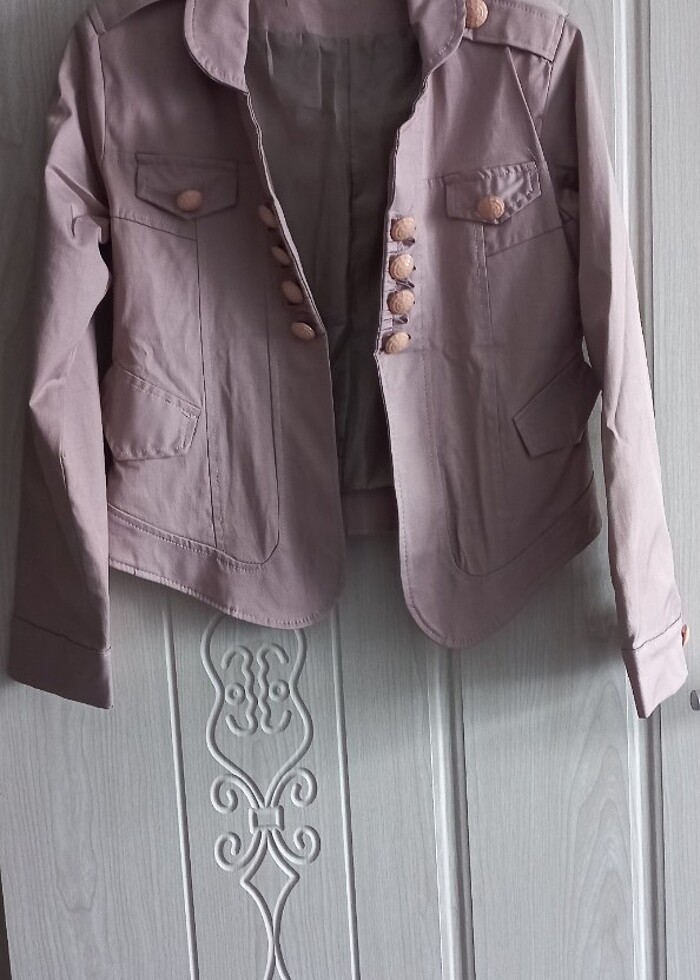 Pudra pembesi Hiç kullanılmadı yalnız baza altında durdu. Arkasında küçük belirsiz bir leke var yıkanınca geçebilir. Çok şık bir ceket