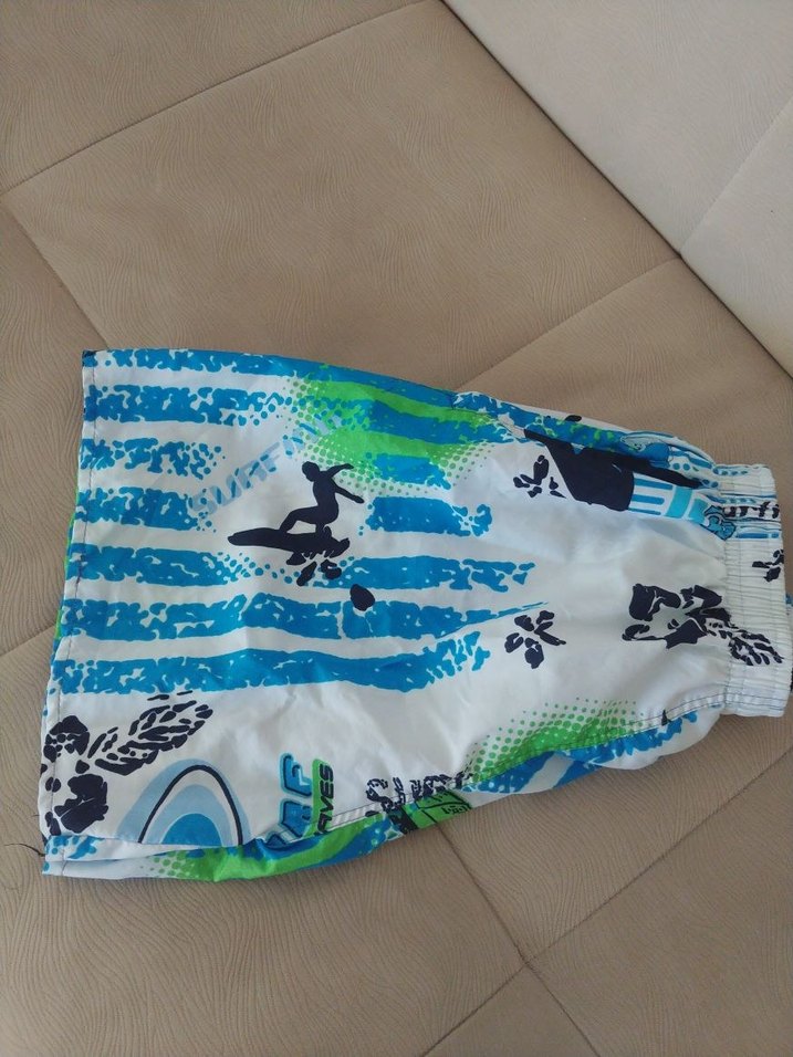 Mavi ve yeşil tonlarda renkli batik desenli, elastik bel bantlı erkek şort sıfır diyebilirim
