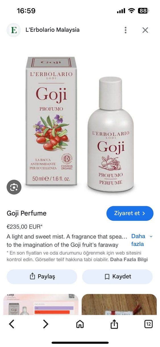L'Erbolario Goji Kadın Parfümü, Goji meyvesinin hayalinden ilham alan hafif ve tatlı bir koku sunar. 50 ml şişede, antioksidan özelliklere sahiptir.