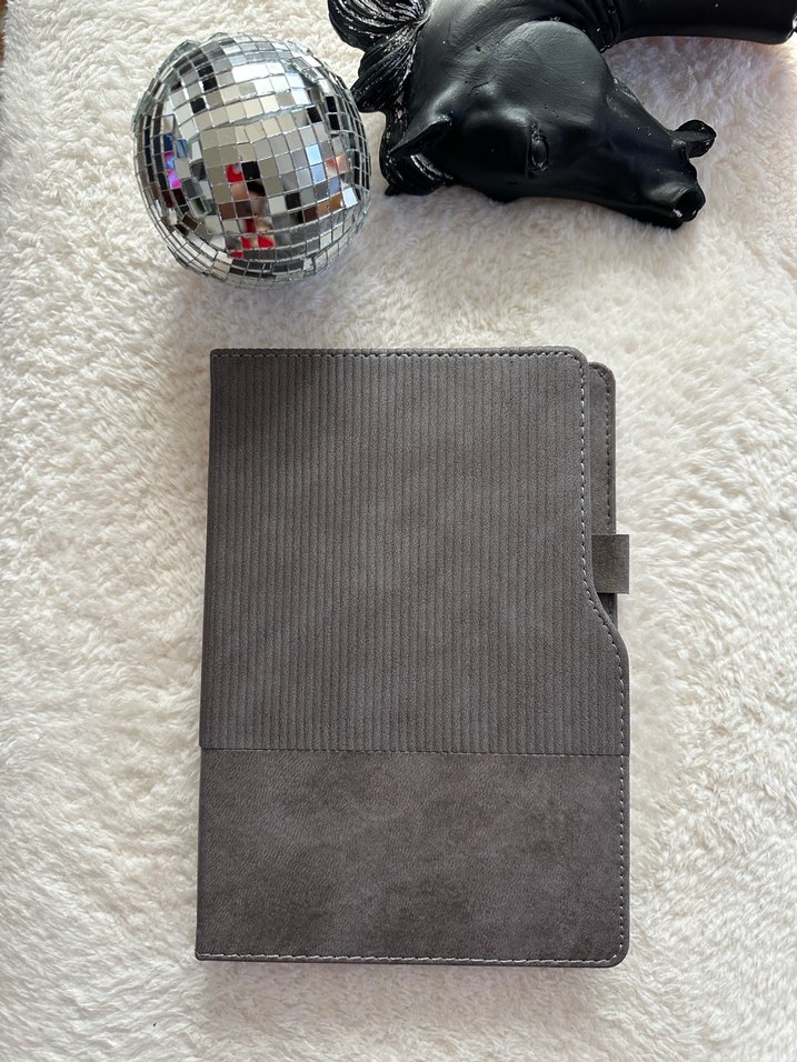 Gri kapaklı, dokulu yüzeye sahip çizgili defter. Yanında kalem tutucu bulunur. 14*21cm 224 yaprak termo deridir Renkleri;kırmızı,lacivert,siyah,gri,haki,taba