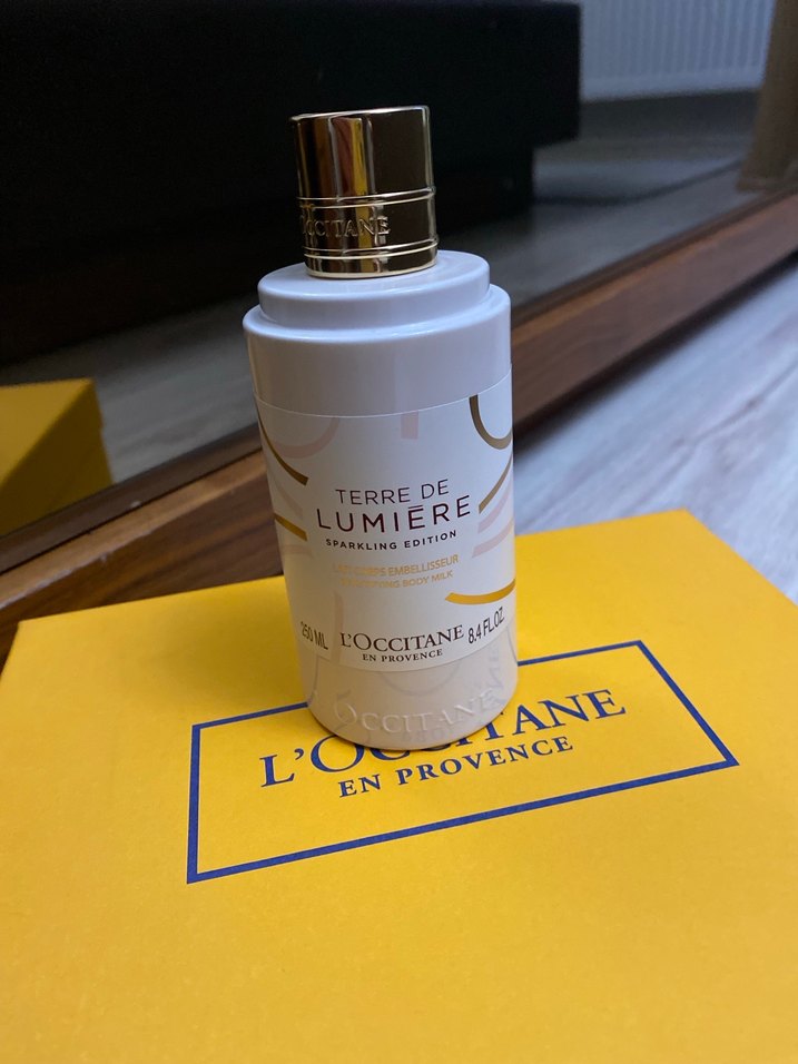 Enfes kokusu var vücut losyonu L'Occitane Terre De Lumiere, kadınlar için ışıltılı bir parfüm olup, zarif ve sofistike bir koku sunar. Şişesi beyaz ve altın kapaklıdır.