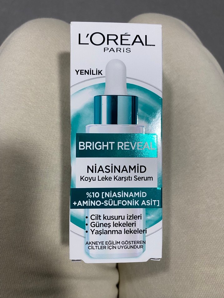 Hiç kullanılmadı sıfırdır . L'Oréal Bright Reveal serumu %10 niasinamid ve amino-sülfonik asit içerir. Koyu lekeler, güneş lekeleri ve yaşlanma izlerine karşı etkilidir. Akneye eğilimli ciltler için uygundur.