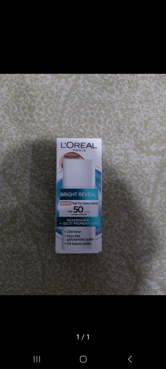 L'Oréal Bright Reveal renkli yüz güneş kremi SPF 50 koruma sağlar. Cildi korur, koyu lekeleri azaltır ve cilt tonunu eşitler. hiç kullanılmadı. sıfır ürün