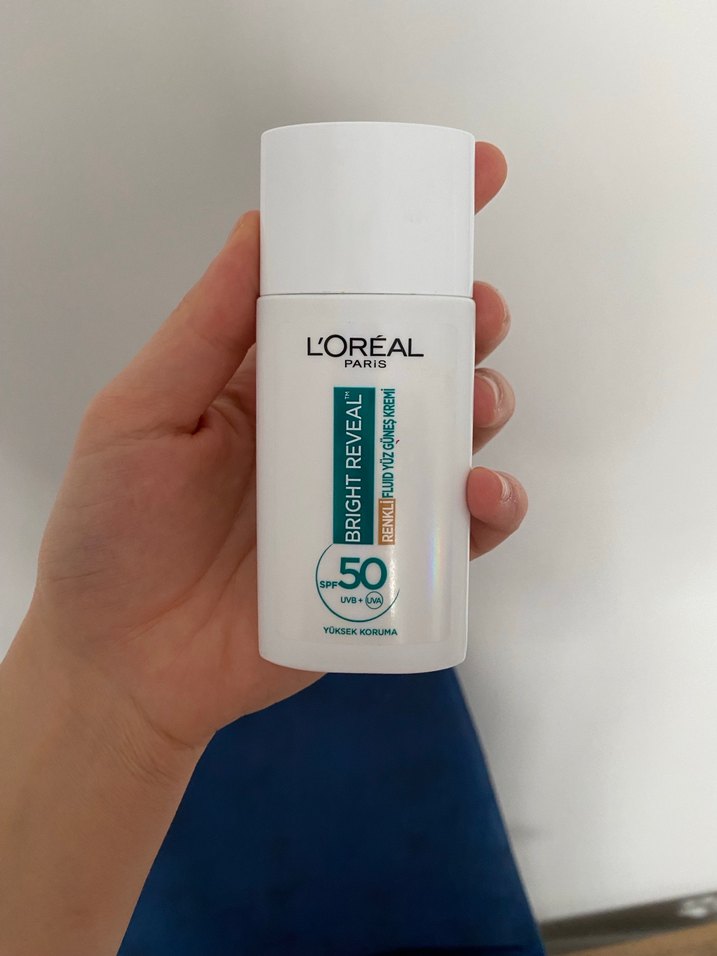 MEDİUM rengi bana koyu geldi sıfır ürün hiç kullanılmadı 12 ay kullanma süresi var L'Oréal Bright Reveal güneş koruyucu, SPF 50 yüksek koruma sağlar ve cildi UV ışınlarından korurken aydınlatır. Günlük kullanıma uygundur.