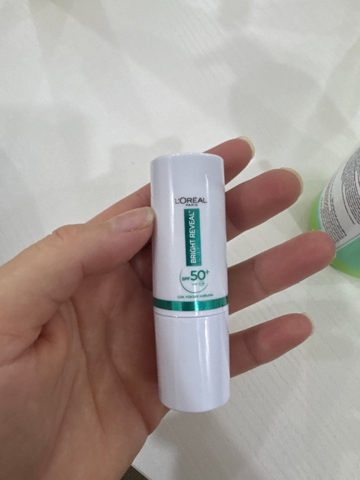L'Oréal Bright Reveal SPF 50+ güneş koruyucu stick, yüksek koruma sağlar ve kolay uygulanır.