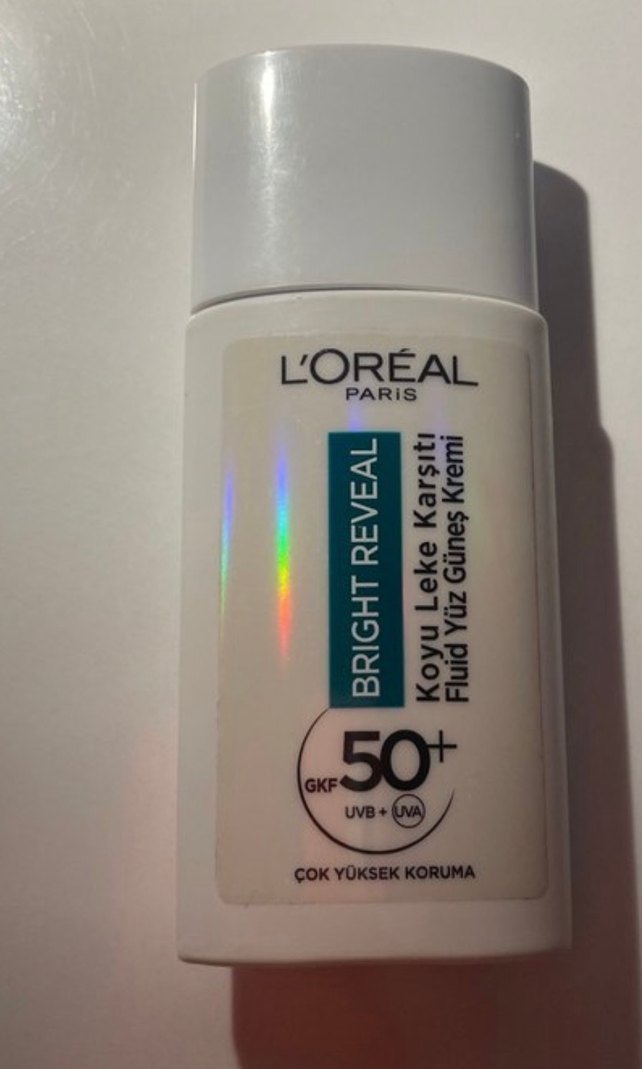 L'Oréal Bright Reveal yüz için SPF 50+ çok yüksek koruma sağlayan güneş kremidir. Koyu lekelere karşı etkilidir. Yarısından fazlası dolu cildime koyu geldiği için satıyorum