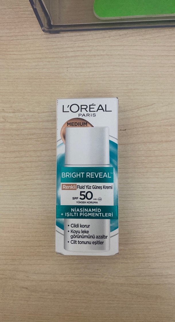 L'Oréal Bright Reveal renkli yüz güneş kremi SPF 50 koruma sağlar. Niacinamide ve ışıl pigmentlerle cildi korur, koyu leke görünümünü azaltır, cilt tonunu eşitler. ☀️ hediye geldi ama rengi uymadı bana o yüzden uygun fiyata satıyorum. Hiç kullanılmadı full dolu. Rengi medium