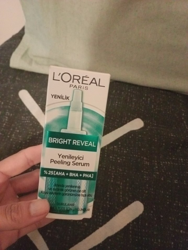 L'Oréal Bright Reveal Peeling Serumu, %25 AHA, BHA ve PHA asitleri ile cildi nazikçe yeniler ve görünümünü iyileştirir.