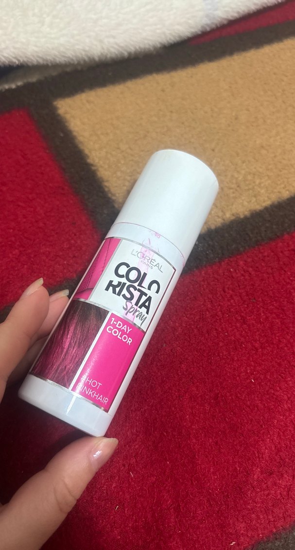 L'Oréal Colorista spreyi, sıcak pembe tonunda, tek gün kalıcı canlı renk sağlar.