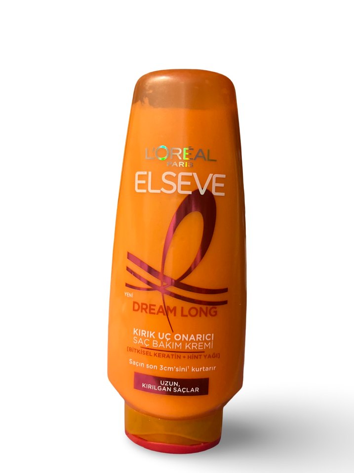 L'Oréal Elseve Dream Long saç bakım kremi, keratin ve hint yağı ile kırık uçları onarır, uzun ve kırılgan saçları güçlendirir.