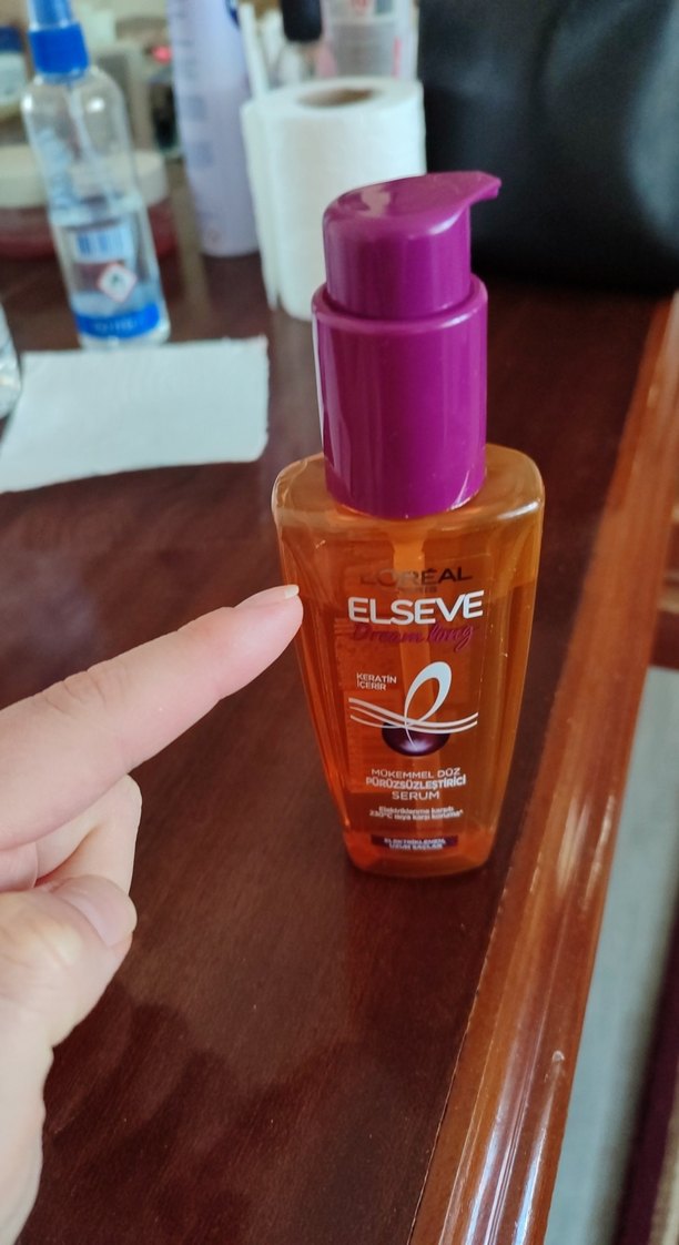 L'Oréal Elseve keratin içeren onarıcı saç serumu, yıpranmış saçları onarır ve düzleştirir. Pompalı şişede, kolay kullanım sağlar. işaret ettiğim yere kadar dolu ben değiştirmek için satıyorum