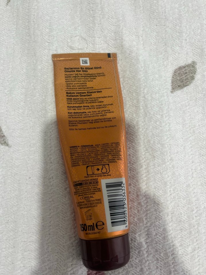 L'Oréal Elseve 75 ml saç kremi, saçı besleyip yumuşatır, pürüzsüz bir görünüm sağlar.