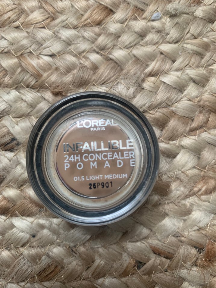 L'Oréal Infaillible 24H Kapatıcı Pomad, açık bej tonunda, 24 saate kadar kalıcıdır ve kolayca karışarak doğal bir görünüm sağlar. Sadece yapısına baktım o kadar. Minnacık bile tüm yüze yetiyor. İade yoktır her şeyi sorun