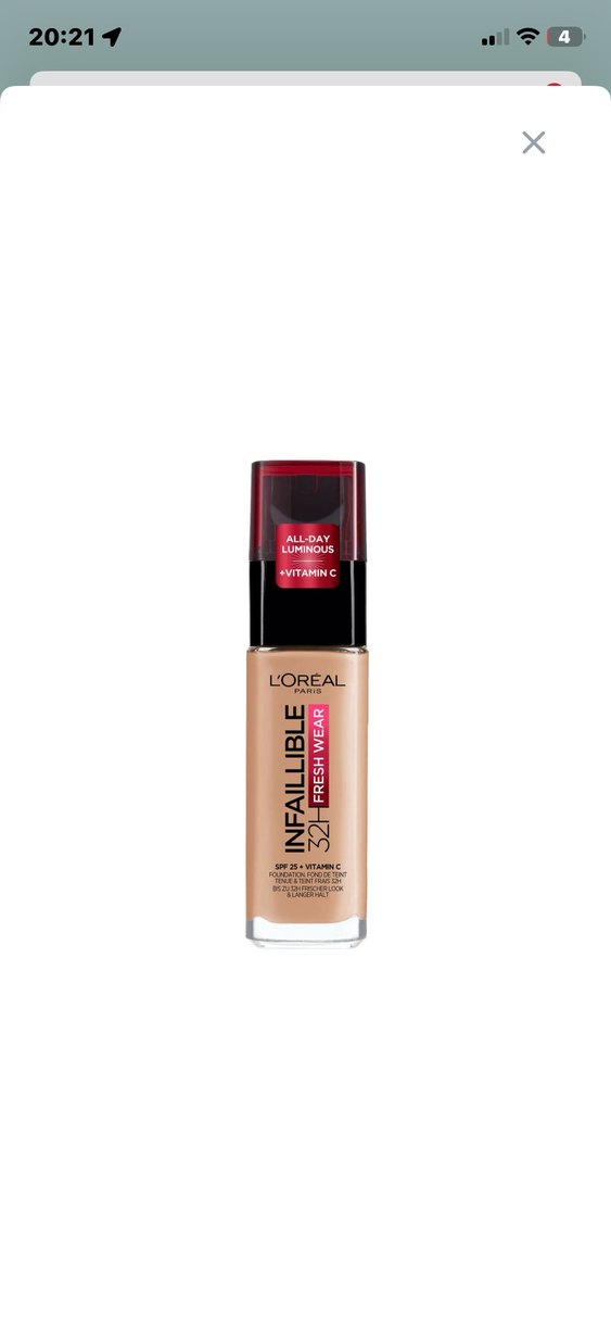 L'Oréal Infallible 24H Fresh Wear fondöten, SPF 25 ve vitamin C ile uzun süre kalıcı, ışıl ışıl bir görünüm sağlar. paket jelatinli orijinaldir