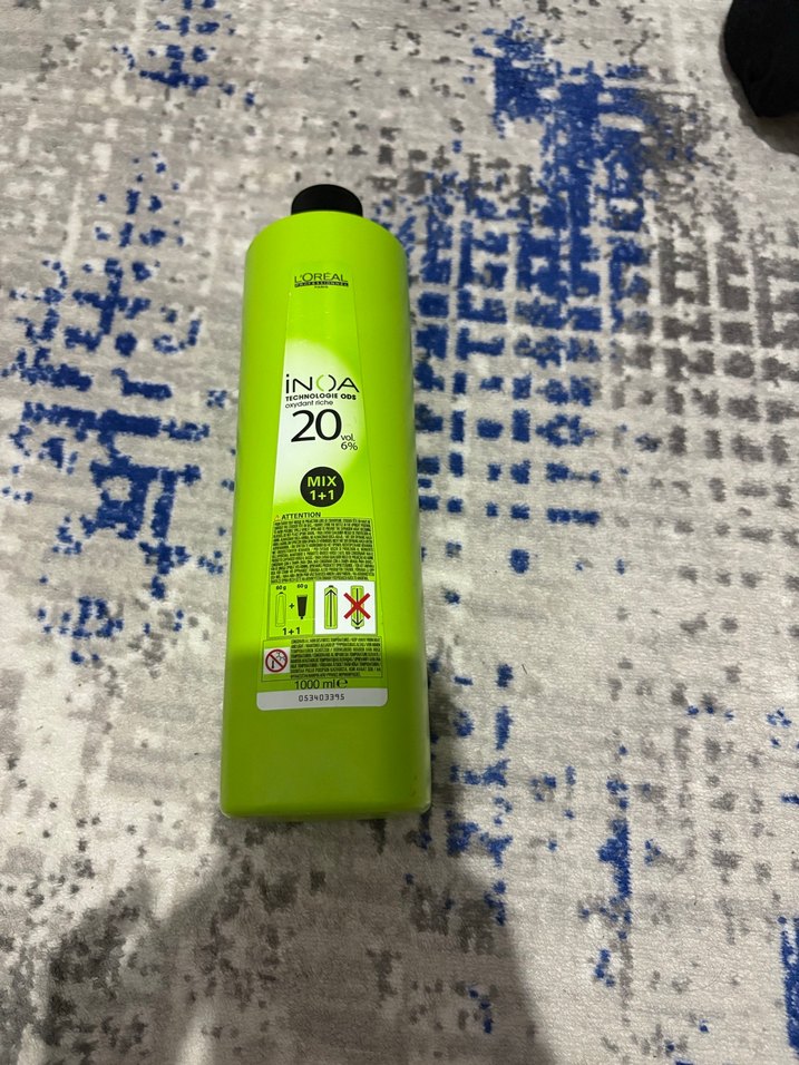 L'Oréal İNOA 20 volüm oksidan, 1000 ml şişede saç boyama için. 1:1 karışım oranı ile kullanılır.