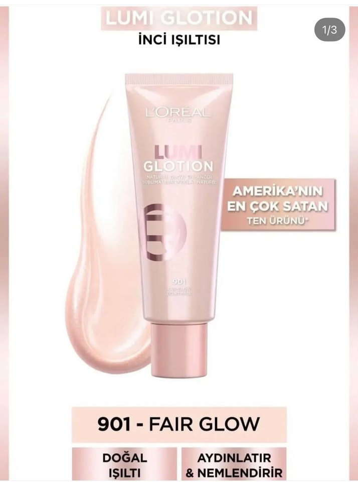 L'Oréal Lumi Glotion 901 Fair Glow, doğal inci ışıltısı ile ten rengini aydınlatır ve nemlendirir. Amerika'nın en çok satan ürünlerinden biridir. ✨