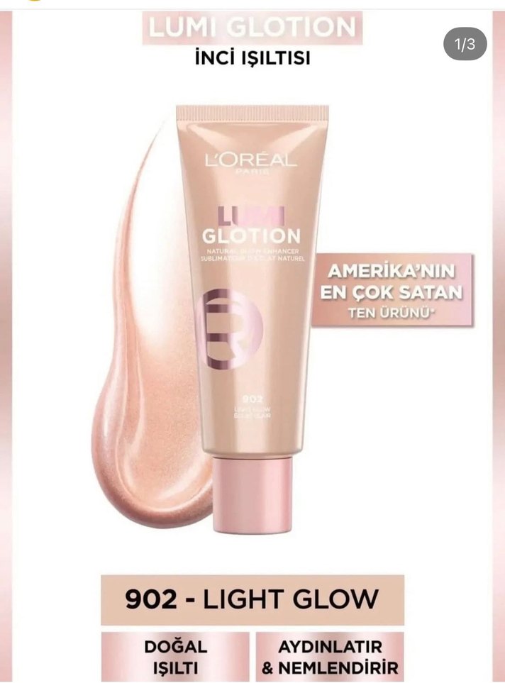 L'Oréal Lumi Glotion 902 Light Glow doğal inci ışıltısı sağlar, cildi aydınlatır ve nemlendirir. Amerika'nın en çok satan ürünüdür. ✨