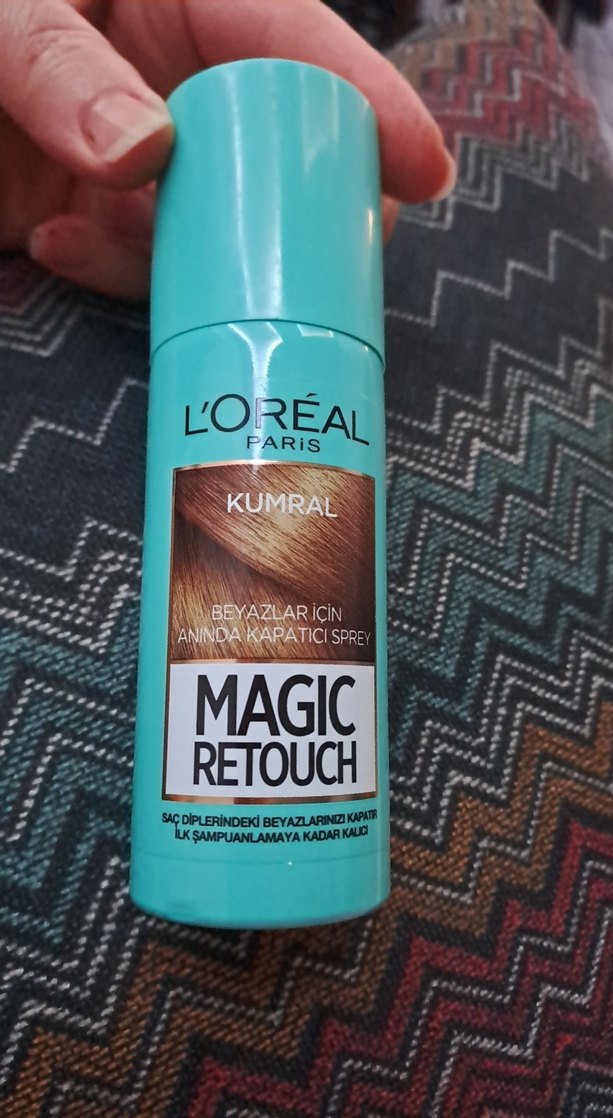 L'Oréal Magic Retouch kumral saç spreyi, beyaz kökleri anında kapatır. İlk şampuana kadar kalıcı, pratik kullanım sağlar.