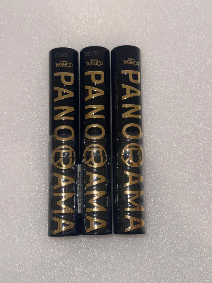 L'Oréal Panoroma maskara koyu renkte, tüpte altın renkli yazılarla. Yoğun kirpik belirginliği sağlar.