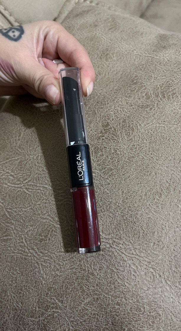 L'Oréal Paris markasına ait koyu bordo tonunda, yoğun renk veren ruj. Balm ve ruj orjinal üründür