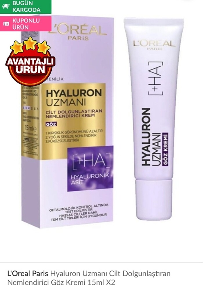 HYALURON uzmanı +HA göz bakım kremi kutusuzdur