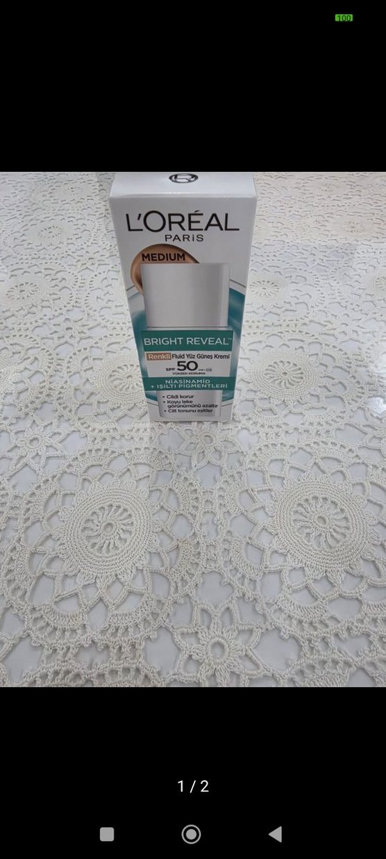 L'Oréal Paris Bright Reveal yüz kremi SPF 50 koruma sağlar. Niasinamid ve eksfoliye edici asitler içerir, cildi güneşten korur ve cilt tonunu eşitler. Orta ton.