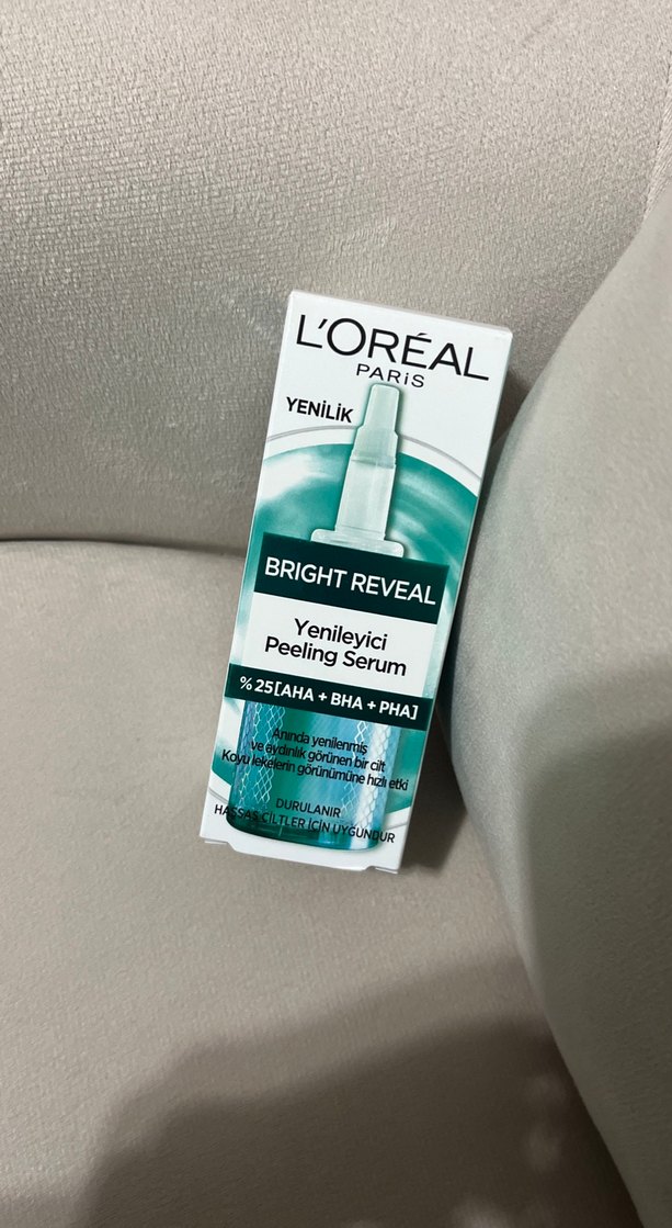 Sıfır ürün hiç kullanılmadı . L'Oréal Paris Bright Reveal Peeling Serumu, %25 AHA, BHA ve PHA asitleri ile cildi yeniler ve dokusunu iyileştirir. Cildi tazeleyip arındırır.