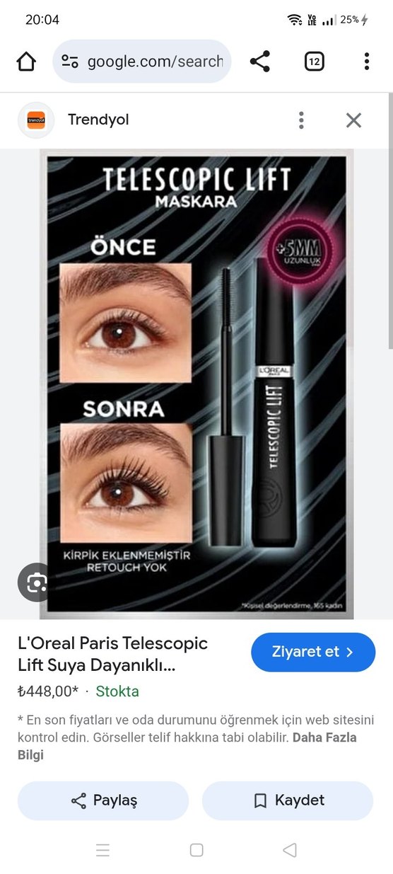 L'Oréal Paris Telescopic Lift Extra Siyah Maskara, kirpikleri kaldırarak ve belirginleştirerek koyu siyah renk sağlar.
