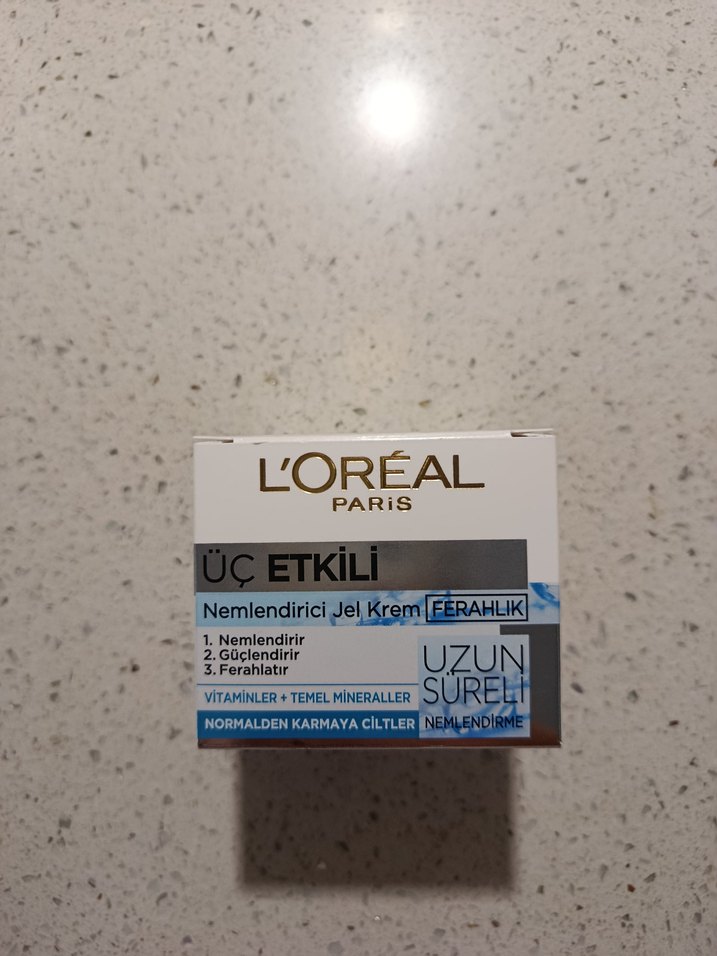 L'Oréal Paris üç etkili nemlendirici jel krem, uzun süreli nemlendirme, güçlendirme ve ferahlık sağlar. Vitaminler ve temel mineraller içerir, normalden karmaya ciltler için uygundur.