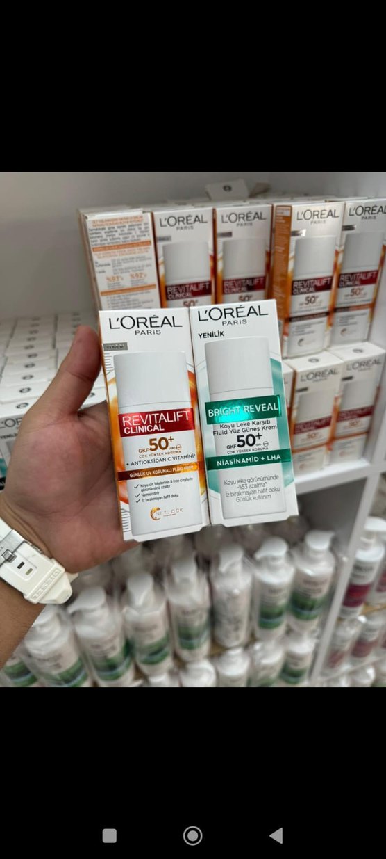 L'Oréal Paris Revitalift Clinical ve Bright Reveal SPF 50+ güneş koruyucuları, koyu leke ve yaşlanma karşıtı etki sağlar, C vitamini, niasinamid ve LHA içerir.