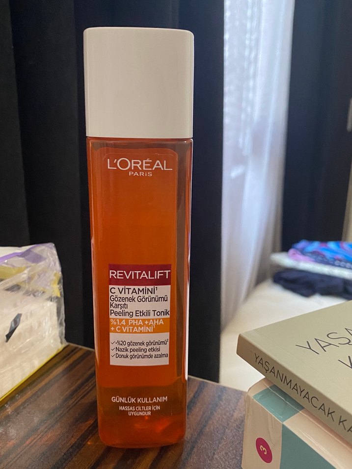 L'Oréal Revitalift tonik, C vitamini ve peeling etkisiyle gözenek görünümünü azaltır, cildi tazeler. Hassas ciltlere uygun, günlük kullanım için.