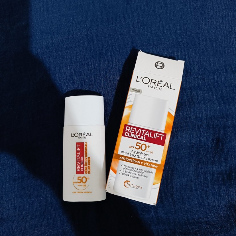 L'Oréal Revitalift Clinical SPF 50+ yüz kremi, antioksidan ve C vitamini içerir. Nemlendirir, kırışıklık görünümünü azaltmaya yardımcı olur, günlük kullanıma uygundur. ☀️ Hiç kullanılmamıştır Hepsiburada'dan aldım orijinal satıcı