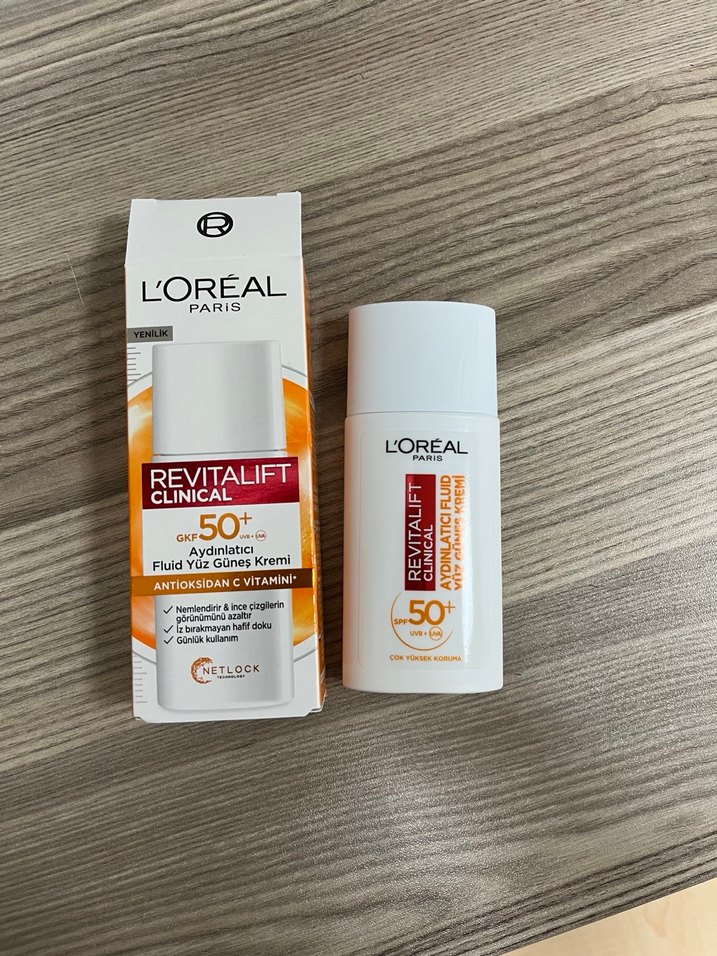 L'Oréal Revitalift Clinical GKF 50+ yüz güneş kremi, antioksidan ve vitamin içerir. Nemlendirir, kırışıklıkları azaltır ve güneşten korur. Günlük kullanım için uygundur. ☀️
