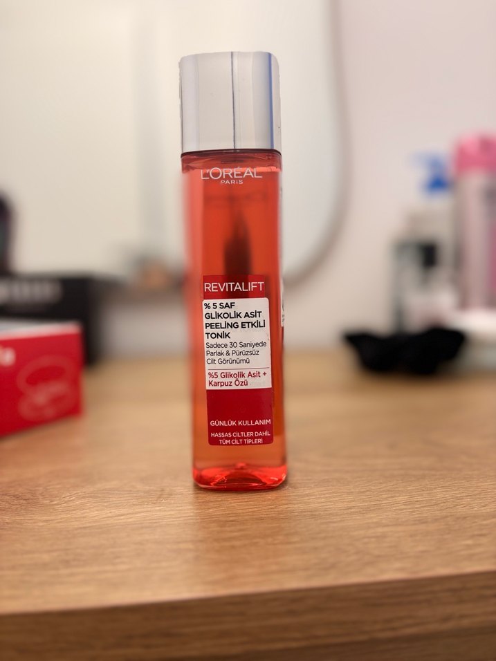 L'Oréal Revitalift tonik %5 glikolik asit içerir. Cildi peeling etkisiyle yeniler, günlük kullanım için uygundur. Tüm cilt tiplerine uygundur. Doludur.
