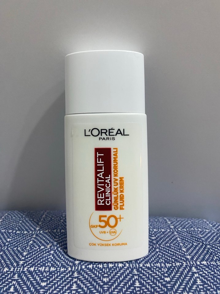 1-2 defa kullanıldı, doludur.Orjinal. L'Oréal Revitalift yüz için SPF 50+ güneş koruyucu, UVA ve UVB ışınlarına karşı çok yüksek koruma sağlar. Akışkan yapısı kolay sürülür. ☀️