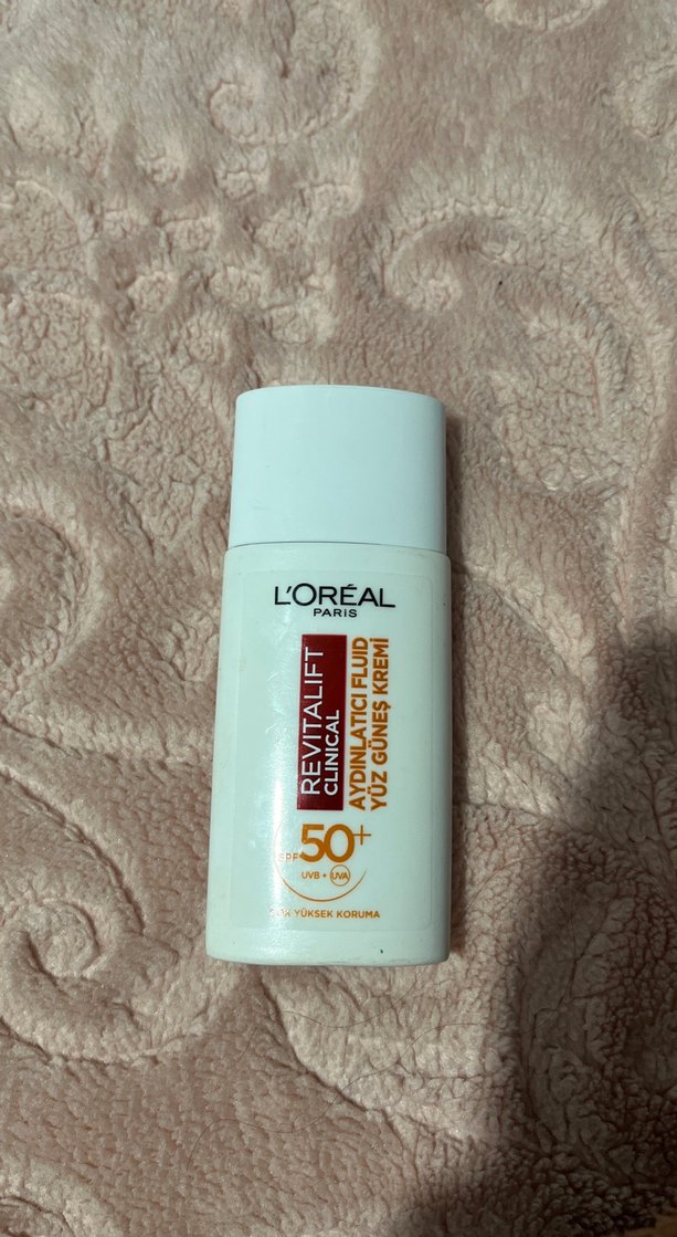 L'Oréal Revitalift yüz için SPF 50+ yüksek koruma ve yaşlanma karşıtı etki sunan güneş kremidir. Sadece bir kere yüzüme sürdüm ve ben sivilce ilacı kullanıyorum cildim kuru olduğu için olmadı bioderma aldığım için satıyorum