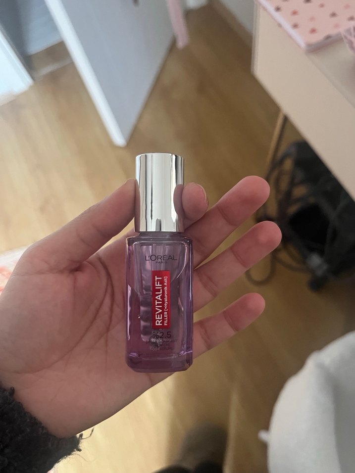 L'Oréal Revitalift kadın bakım şık mor şişede ve gümüş kapaklıdır. Kompakt ve kullanımı kolaydır.