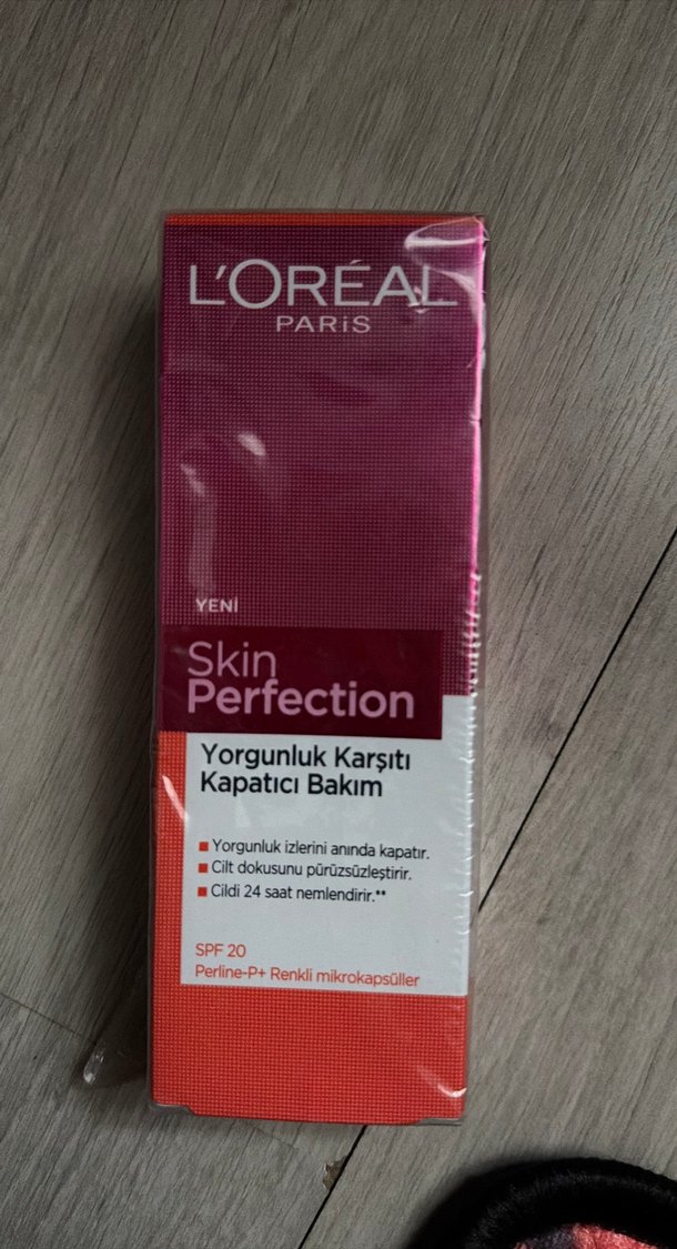 L'Oréal Skin Perfection SPF20 yorgunluk izlerini anında kapatır, cilt dokusunu pürüzsüzleştirir ve 24 saat nemlendirir. Renkli mikrokapsüller içerir.