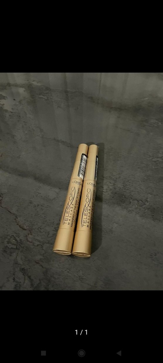 L'Oréal Telescopic maskara, parlak altın renginde, kirpikleri uzatan ve pürüzsüz bir görünüm sağlayan ürün. ✨