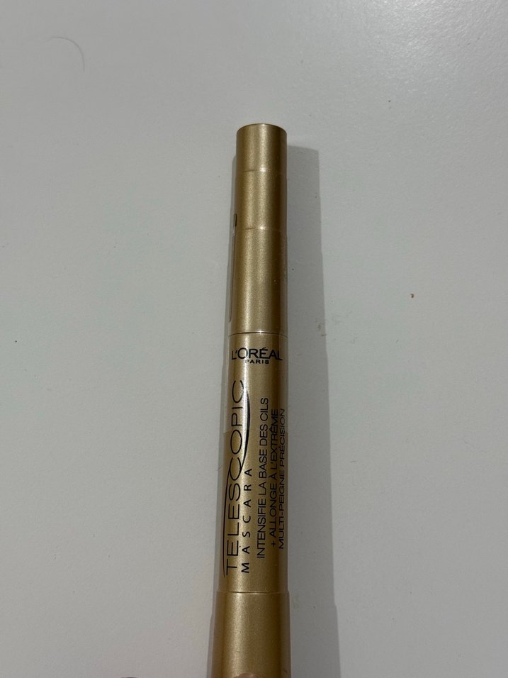 L'Oréal Telescopic maskara, parlak bej renkte, kirpikleri uzatan ve hassas uygulama sağlayan bir üründür.✨