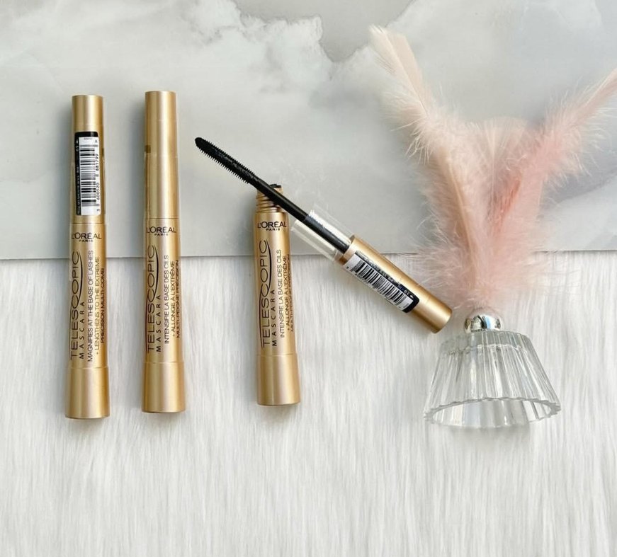L'Oréal Teleskopik maskara, parlak bej renkte, ince fırçasıyla kirpikleri belirginleştirir.