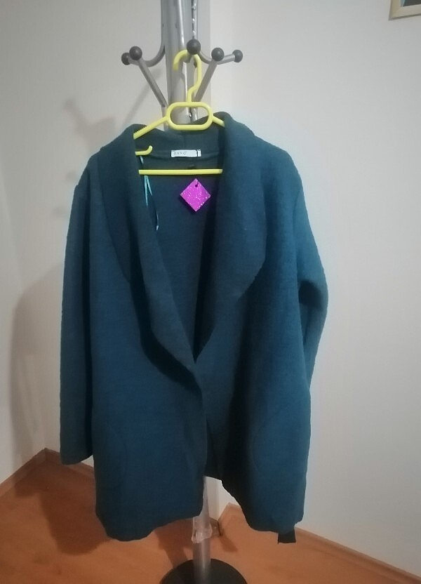 38 beden turkuaz mavi renginde önü bağlı yanları cepli m ve L bedene uygun hırkadan kalın kaban annem bir kez giydi çok yeni rengi ve duruşu çok hoş